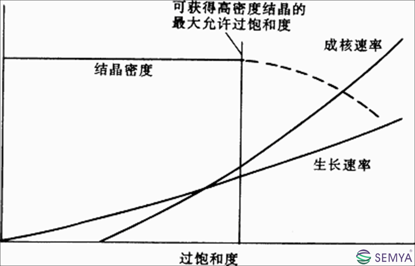 1.過(guò)飽和度 增大溶液過(guò)飽和度可提高成核速率和生長(zhǎng)速率,有利于提高結(jié)晶生產(chǎn)能力。
